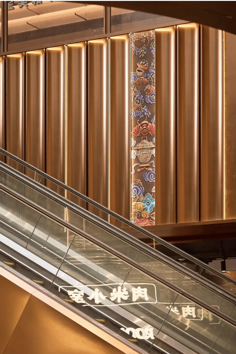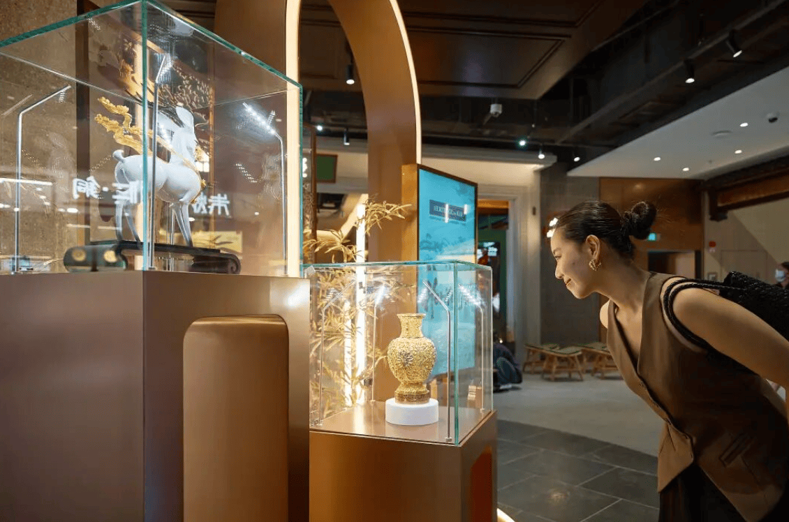 传统灰塑与满洲窗元素以当代设计呈现。漫步其间,既能感受文化传承,也可亲手体验非遗工艺,感受