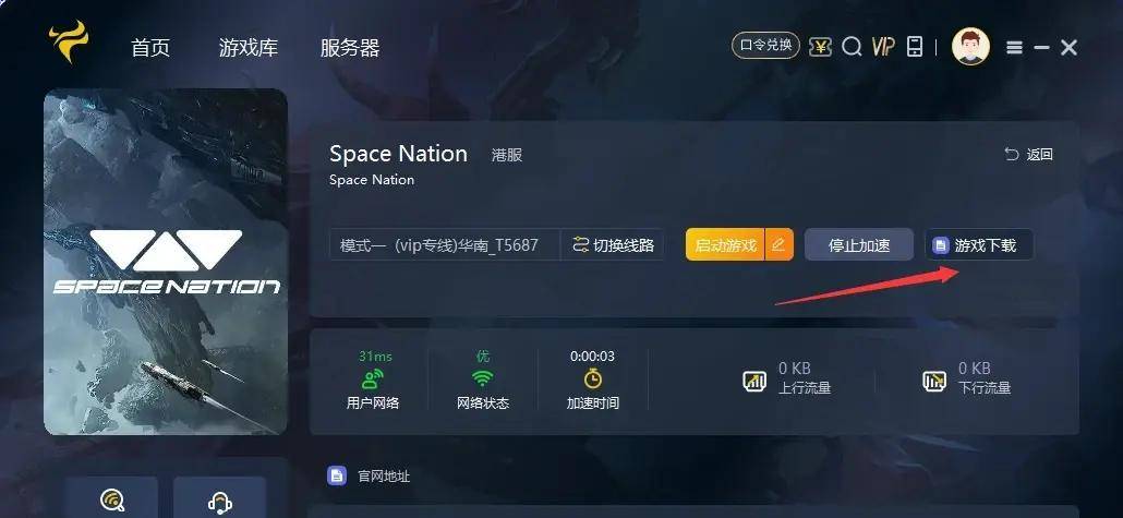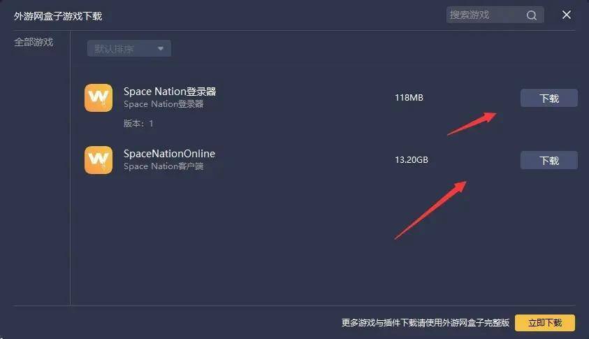 加速成功后,在加速详情页面,点击游戏下载按钮,就可以进入“外游网盒子”的游戏下载器,直接下载游戏登录器与游戏客户端本体;