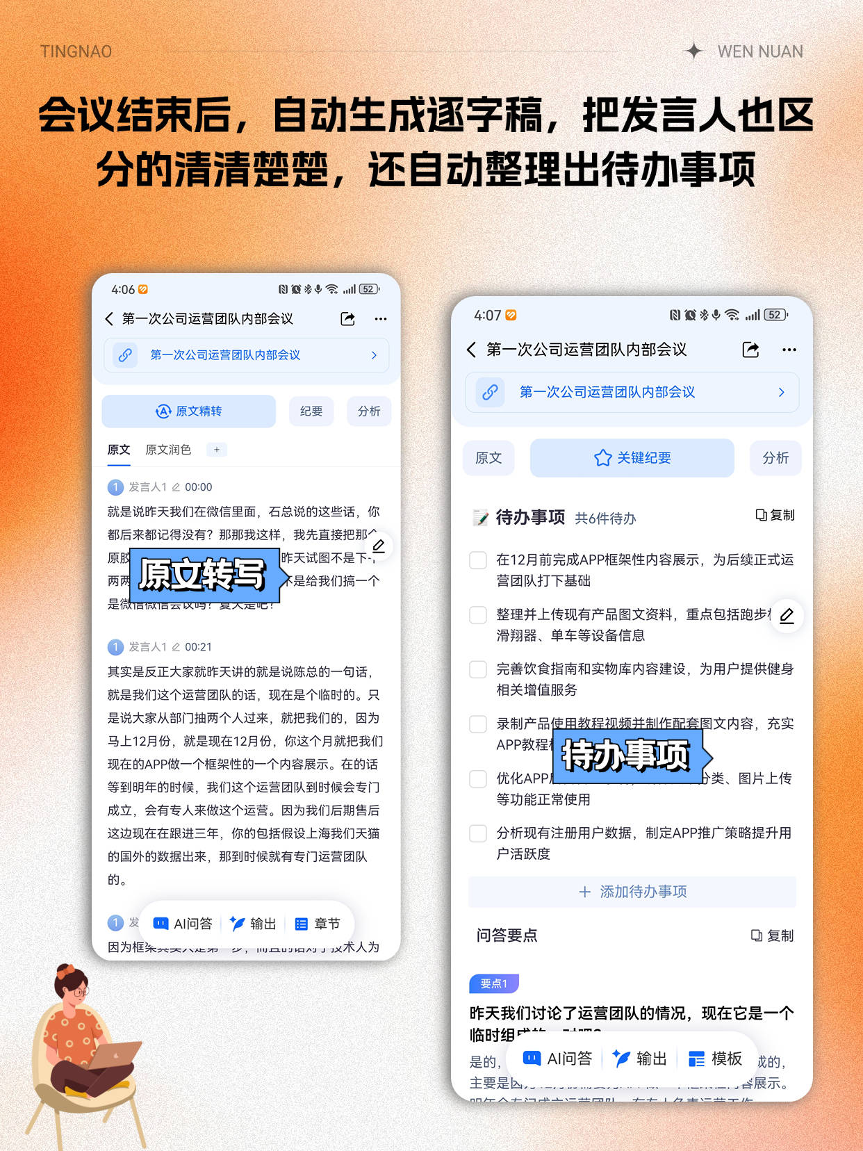 第三个场景是帮朋友整理学术访谈:朋友是大学生,要做一篇关于“AI伦理”的论文,采访了一位教授的B站学术讲座,1.2小时的内容。用听脑AI转写后,不仅自动纠正了教授提到的学术术语,还提取了核心论点,比如“AI算法偏见的根源”“监管政策的必要性”,甚至生成了论文写作的待办清单:“查找2026年最新监管案例”“对比国内外伦理标准”。朋友说原本要花一下午整理的内容,用听脑AI20分钟就搞定了,直接拿着整理好的稿开始写论文,省了超多时间。