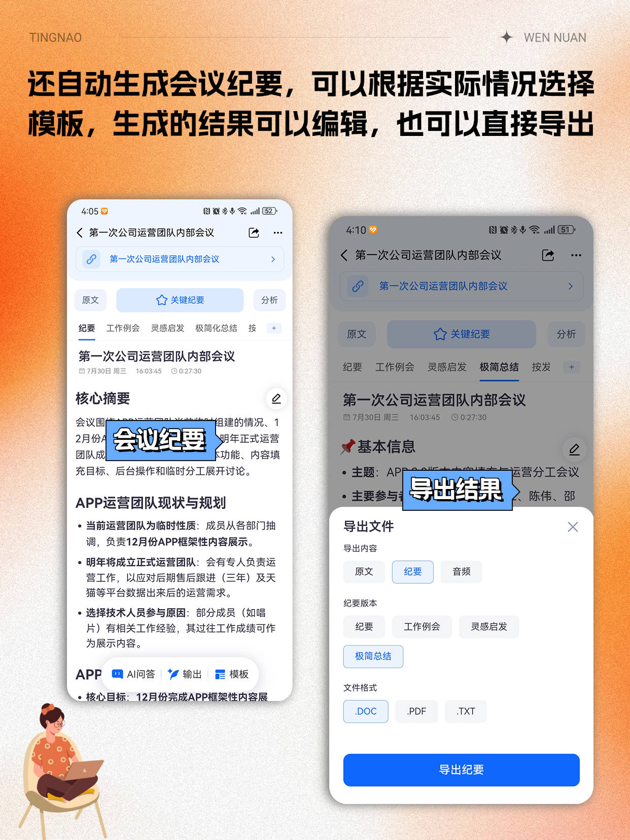 其实听脑AI的优势远不止B站转写,它的实时转写、智能分段、关键词提取、自动生成待办这些功能,不管是职场会议、在线学习还是客户沟通,都能用上。就拿上周我参加的行业交流会来说,用听脑AI实时转写会议内容,结束后直接导出了带关键词的会议纪要,还生成了待办:“跟进AI硬件合作商”“提交2026年内容规划”,连会议总结都省得写了。它就像一个全能的效率助手,把所有繁琐的文字整理工作都承包了,让我能把精力放在真正有价值的创意输出上。