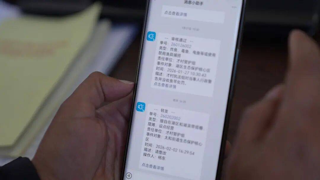 大理市洱海流域管护中心才村管护组组长杨萍通过手机接收到一组由“洱海卫士”小程序派发的举报案件,从接收案件到派遣组员前往现场核实情况,整个过程仅用时两分钟。
